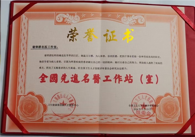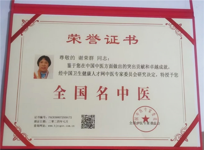 谢荣群,1964年2月10日出生在广西贺州市的一个官宦世家里,是集生父家,养父家,丈夫家三家人医术于一身的中医传人,是人称的壮族神医。从小就跟着爷爷上山挖药治疗难杂症,从医三十多年,用中医加壮药功克了多种医学难题, 并拿到了国家的发明专利,深受国内外各界人士及同行界的一致好评,也得到了各级领导及各大媒体的大力支持与帮助。先后得到中央电视台、中国网、中央党校求是先锋、广东揩模、广东省电视台、中华医学会在马来西亚会刊的报道宣传。治好过很多在三甲医院都无法医治的绝症和癌症病人,能使黄疸肝炎3到5天诮去黄胆,初期的肝硬化复水肿。可以在一个星期里消去水肿,一个月能使肝硬化消失。治疗眼疾病、初期的白内障、青光眼、近视眼、眼胀、痒、流泪、眼凸出、眼萎缩变小,不用手术,不用激光,只用中药,20分钟内见效,1到3小时治好。中央电视台的记者给我一个亮阿姨的称号,百姓给我一个神医的称号,今后我会更加的努力,把中医做好,为社会服务,救更多的生命,不辜负党和人民的希望。