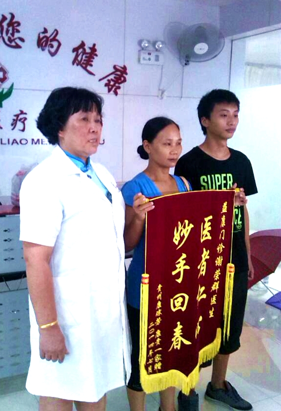 谢荣群在行医的过程中,还经常遇到一些贫困的病人,谢医生不仅不收诊金,反正还赠药、甚至赠钱,以帮病人度过难关。谈到这个话题,谢医生一声叹息,她对现代医生的医德也表示担忧。对此,谢医生讲了一个她故事。几年前,谢医生曾在香港遇到一个病人,他的身体存在肾萎缩、高血压、心脏病、脑血栓等多种问题,吃西药没有效果。但谢医生给他开了一些中药,逐渐恢复了各种身体机能,各种生理指标也回归正常。但到了冬天换季之时,风湿病忽然发作了,开始腿脚痛。因为香港医疗服务是免费的,该病人依赖护士伺候,于是又住进了医院。可病人未向医生说明曾因吃中药而康复,医生以为是吃西药吃好的,于是加大西药量,4天后,病人爆血管死去。